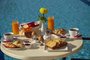 In Mesogios beach we believe that a good day starts with a good breakfast, and we serve for you 4 different types of breakfast with an authentic Cretan breakfast, with local fresh products. You can have your breakfast in your room or outside of the pool.