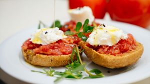 - Strong bread with tomato sauce and cretan goat cheese